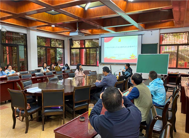 王希贤老师主要从大会的基本情况与主要内容进行解读,从过去五年的工作和新时代十年的伟大变革、开辟马克思主义中国化时代化新境界、新时代新征程中国共产党的使命任务、推进中国式现代化建设的具体举措、总结与号召五个方面重点进行了宣讲。