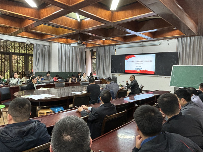 本网讯(文、图/薛文娟)11月7日下午,万象城allwincity官方网站入口在实验楼102教室举行“中国共产党人精神谱系”宣讲报告会。马克思主义学院蒋政教授应邀作宣讲,全院教职工聆听宣讲报告。宣讲报告会由学院党委副书记、院长郭剑英主持。