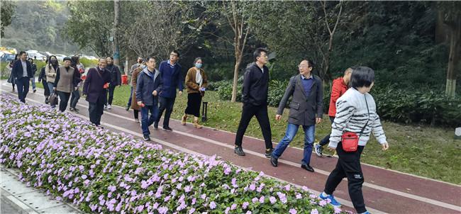 参加活动的教职工们迈着轻快的步伐你追我赶,一边欣赏绿心公园初冬的景致,一边交流近期的工作生活情况,气氛融洽,一路欢声笑语。