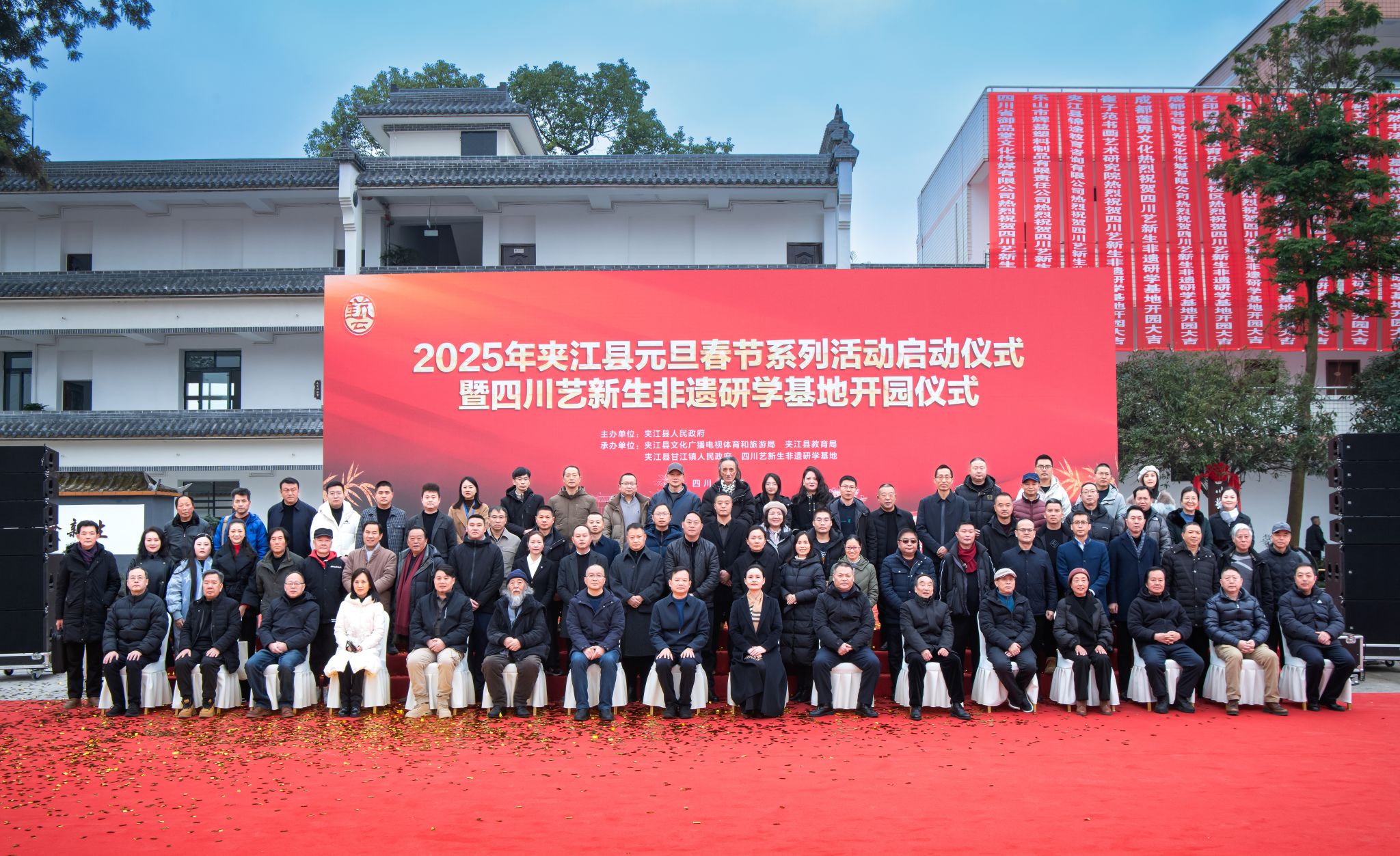 夹江县人民政府副县长刘兰作2025年夹江县元旦春节系列活动发布。活动现场举行了四川艺新生非遗研学基地揭牌仪式,商咏梅为四川艺新生非遗研学基地揭牌。徐秀云受委托为基地授牌教学实践基地,乐山市非物质文化遗产保护中心为基地授牌乐山非遗传习体验基地,嘉州画院、乐山市美术家协会、乐山市书法家协会为基地授牌瓷艺创作基地,乐山市盆景艺术协会为基地授牌盆景艺术创作基地。