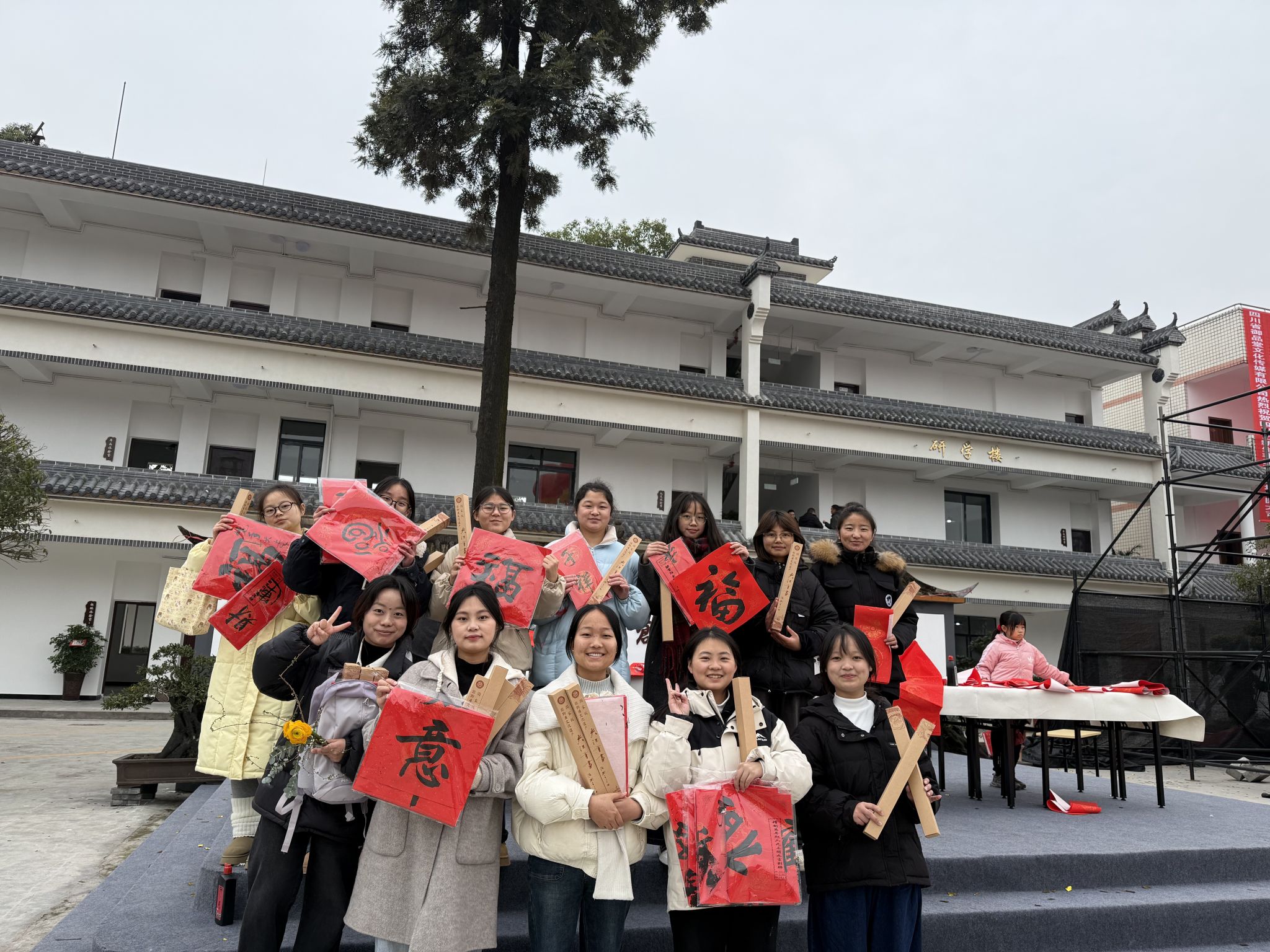 本网讯(文/吴薇;图/四川艺新生非遗研学基地、吴薇)12月28日,应夹江县人民政府邀请,万象城allwincity官方网站入口党委书记徐秀云,党委副书记、院长郭剑英,副院长但强,四川旅游发展研究中心原主任郑元同,四川世界遗产普及基地主任乔恒忠,学院教师吴薇和12名学生志愿者参加了在夹江县甘江镇新生村举办的2025年夹江县元旦春节系列活动启动仪式暨四川艺新生非遗研学基地开园仪式。