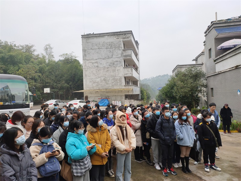 本网讯(文图/王科霖)为认知与印证乐山市市区棉竹镇天空山村“多规合一”村规划的编制与实施、学习如何处理与上位国土空间规划的衔接关系、了解村两委着力提升农民的“三生”环境(即生产环境、生活环境、生态环境)的举措,深入调研天空山村产业发展方向与重点,旅游学院郑元同教授、院长助理孙永兴、实验室老师段捷、张家喜,辅导员王一鸣带领18级、20级人文地理与城乡规划专业学生共140余人于12月10日前往绵竹镇天空山村开展实践周课程见习活动。