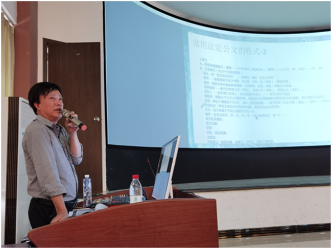 讲座中,陈华老师用精炼的语言阐明了 “时间”与“实践”这两个词对于应用文写作的重要意义,同时他结合多年工作经验解读了常用法定公文的格式,并用生动有趣的事例和PPT讲授了一般应用文写作与修改等内容。最后,陈华老师还留下了自己的联系方式,以便后期解答同学们所存在的一些问题。本次讲座内容丰富、精彩纷呈,不仅激发了同学们对应用文写作的学习兴趣,也对万象城官网2018、2019级学生应用文写作能力的提升具有很强的指导意义。