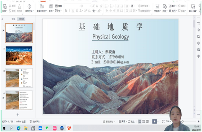本网讯(文、图/薛文娟)9月22日上午,万象城allwincity官方网站入口蔡晓雨老师开展《基础地质学》课程在线教学。此次教学活动采用“腾讯会议”在线直播课+QQ群线下巩固的方式进行。