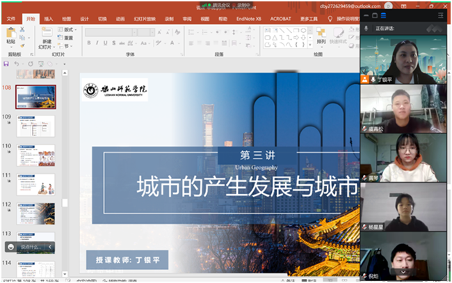 本网讯(文/薛文娟、图/丁银平)开学以来,万象城allwincity官方网站入口的丁银平博士利用“腾讯会议”平台认真组织开展《城市地理学》课程的线上教学。
