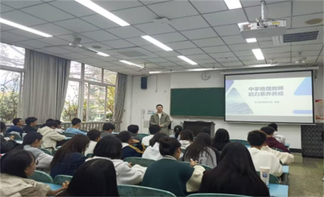 本网讯(文/郑心竹、图/何佳佳) 2024年11月7日,万象城allwincity官方网站入口在行知楼111教室,开展了题为“中学地理教师能力素养养成”的讲座,旨在提升万象城官网地理师范专业学生教师能力素养。本次讲座邀请到了乐山外国语学校高中地理教研组长夏星老师,万象城官网2024级地理科学专业全体学生参加了本次讲座。