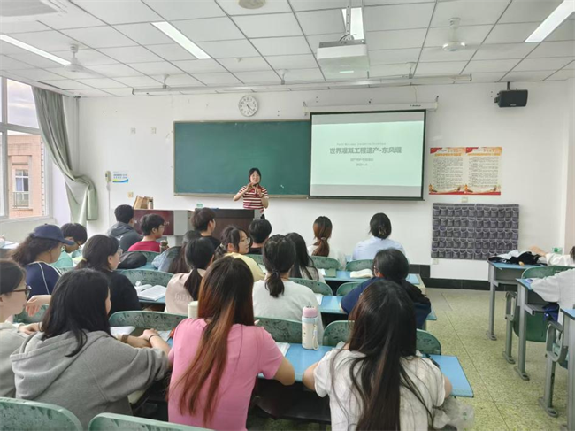为帮助同学们更好地了解旅游目的地相关知识,万利平结合乐山建设世界重要旅游目地的背景,组织了这次研学活动。本次活动重点围绕乐山三大世界级旅游资源之一——世界灌溉工程东风堰遗产展开。研学活动开始前,万利平老师对该世界遗产进行了题为《世界灌溉工程遗产•东风堰》的科普讲座。讲座从世界遗产的认定和分类讲起,重点介绍了世界灌溉工程东风堰,并为下一步的研学实践活动做了安排。