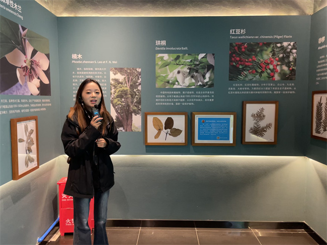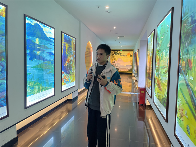 在博物馆内,同学们化身“实习导游”,分小组在真实游览动线中模拟带团操作。从欢迎词、行程预告,到针对重点展品——如峨眉山地质演化沙盘、动植物标本陈列区进行生动讲解,再到灵活应对“游客”的随机提问,同学们完整演练了导游接待全流程。教师则在旁观察记录,适时点拨,就讲解技巧、站位姿态、知识准确性及团队节奏把控等进行现场指导。