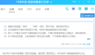 经过前期不断的尝试和课程的实际情况,余老师最终决定采取“学习通”、“QQ群”和“腾讯会议”相融合的混合式教学方法开展网络教学。即首先要求学生熟悉电子书章节内容,结合内容观看在线视频并做好相关的笔记;然后通过学习通和QQ群同时上传并发布学习讨论、学习资料和学习任务等,督促学生完成相关讨论;最后利用“腾讯会议”开展直播教学,结合典型案例对重难点知识进行深入讨论分析,同时对学生在学习通上的讨论进行相应的答复。