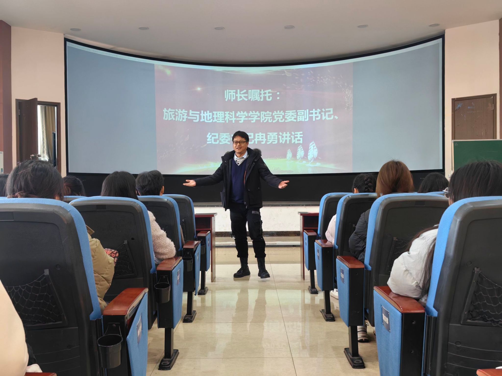 本网讯(图/王李驹、文/卿婷)3月7日,万象城allwincity官方网站入口在旅院楼202教室召开了学生干部大会暨第八届旅游嘉年华启动会。大会由分团委书记江纳主持,万象城allwincity官方网站入口党委副书记、纪委书记冉勇以及部分学生干部参加了此次大会。