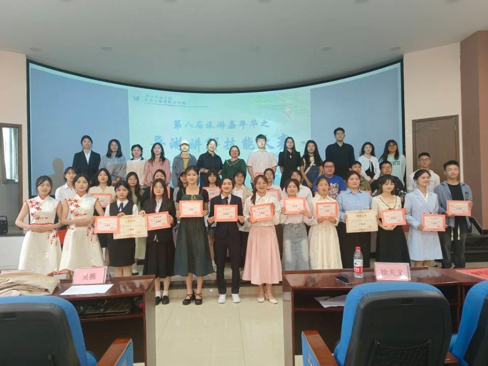 比赛现场,选手们围绕不同地区的文化和旅游资源进行现场模拟讲解,带领大家领略各地特色风光和民俗风情。他们精彩的表现,时不时赢得台下阵阵掌声。在本次讲解比赛中,各位选手带观众领略到了黑龙江佳木斯等地的壮美自然风光和人文景观。其中苟婷讲解的《泸沽湖》让大家领略了泸沽湖的自然美景,杨霜的《北斗故里,嫦娥故乡》带大家游历了西昌的风光旖旎,四季如画,让人如临其境。随后吴薇老师对选手们的表现进行了点评,指出了不足,提出了建议,向同学们讲解了提升导游讲解技能的要求与技巧。
