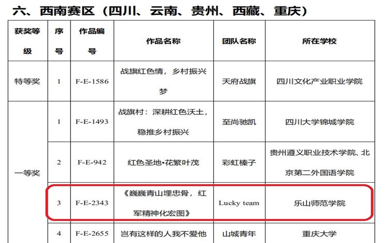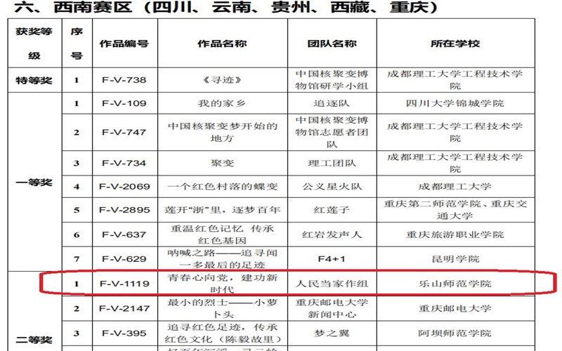 左莉和冉勇老师指导的学生团队作品《共话先烈忆昔年》,王一鸣和冯晓兵老师指导的学生团队作品《青春心向党,建功新时代》分别荣获红色足迹微视频(全国)类作品西南赛区二等奖。