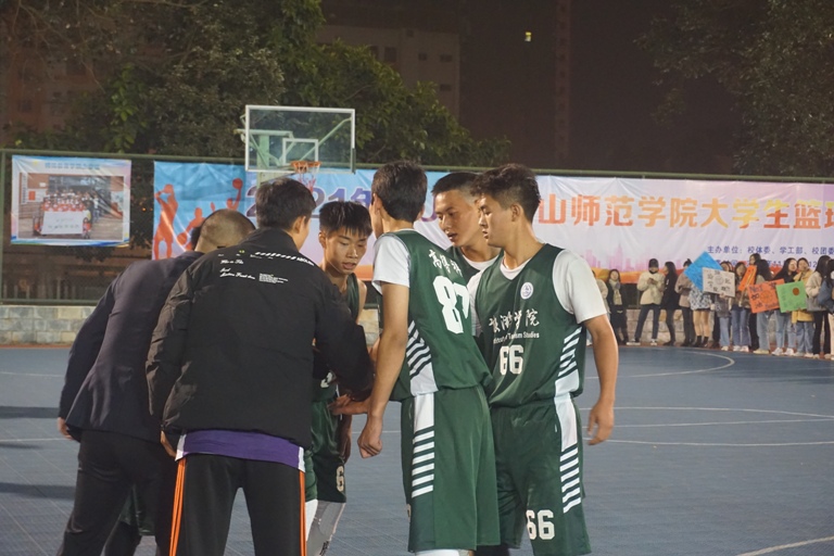 本网讯(文/陈姗姗、图/肖雨蕾)11月27日,旅院学子于南校区篮球场参加2021年LUBA乐山师范学院大学生篮球赛前八强比赛。21级辅导员喻剑老师、21级部分学生以及啦啦队们到场为球员们呐喊助威。