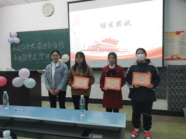 主持人为参赛选手介绍了比赛规则,比赛正式开始。参赛选手精神饱满、青春洋溢,表达了以优异成绩喜迎二十大胜利召开的决心,述说着对党和祖国最清澈的爱,祝愿伟大的祖国繁荣昌盛,人民幸福安康。最终,20级杨洁同学以出色的表现获得本次比赛第一名。评委对参赛选手的表现作了点评。