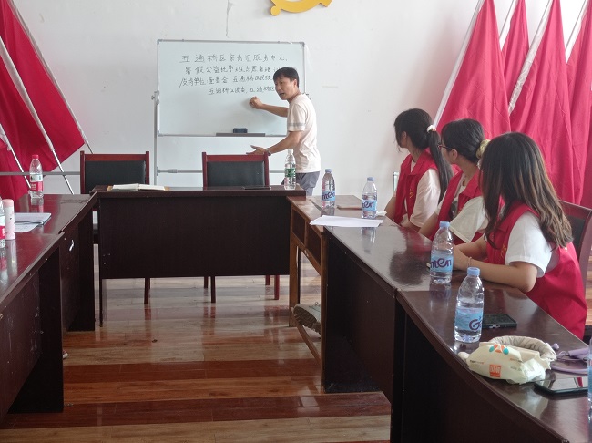 为了让更多的留守儿童参与到暑假公益班中来,团队将线上和线下两种宣传方式充分结合,在线上宣传和预报名后,该团队发现金山镇文化站服务站点知晓该活动的家庭较少,于是7月3日该团队便前往了该地小学进行实地活动宣传。
