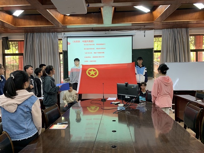 培训在迎团旗、唱团歌中拉开序幕。胥俐君老师从党的历史主动性、党的历史自信从何而来和争做时代新人三个方面深刻阐释了党的先进性的内涵,强调当代学子深入学习马克思主义的重要性。在培训过程中,胥俐君老师邀请学员们进行心得分享,总结了本次培训内容,对学员们提出了希望。