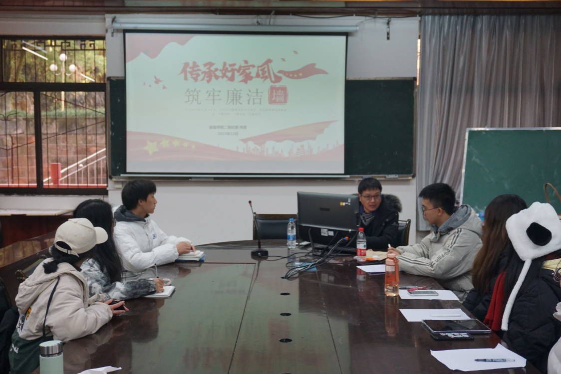 本网讯(文/图 刘涛)12月19日中午,万象城allwincity官方网站入口于旅院楼102举行“传承好家风,筑牢廉洁墙”主题讲座,本次讲座由党委副书记,纪委书记冉勇带领23级团支书进行学习。