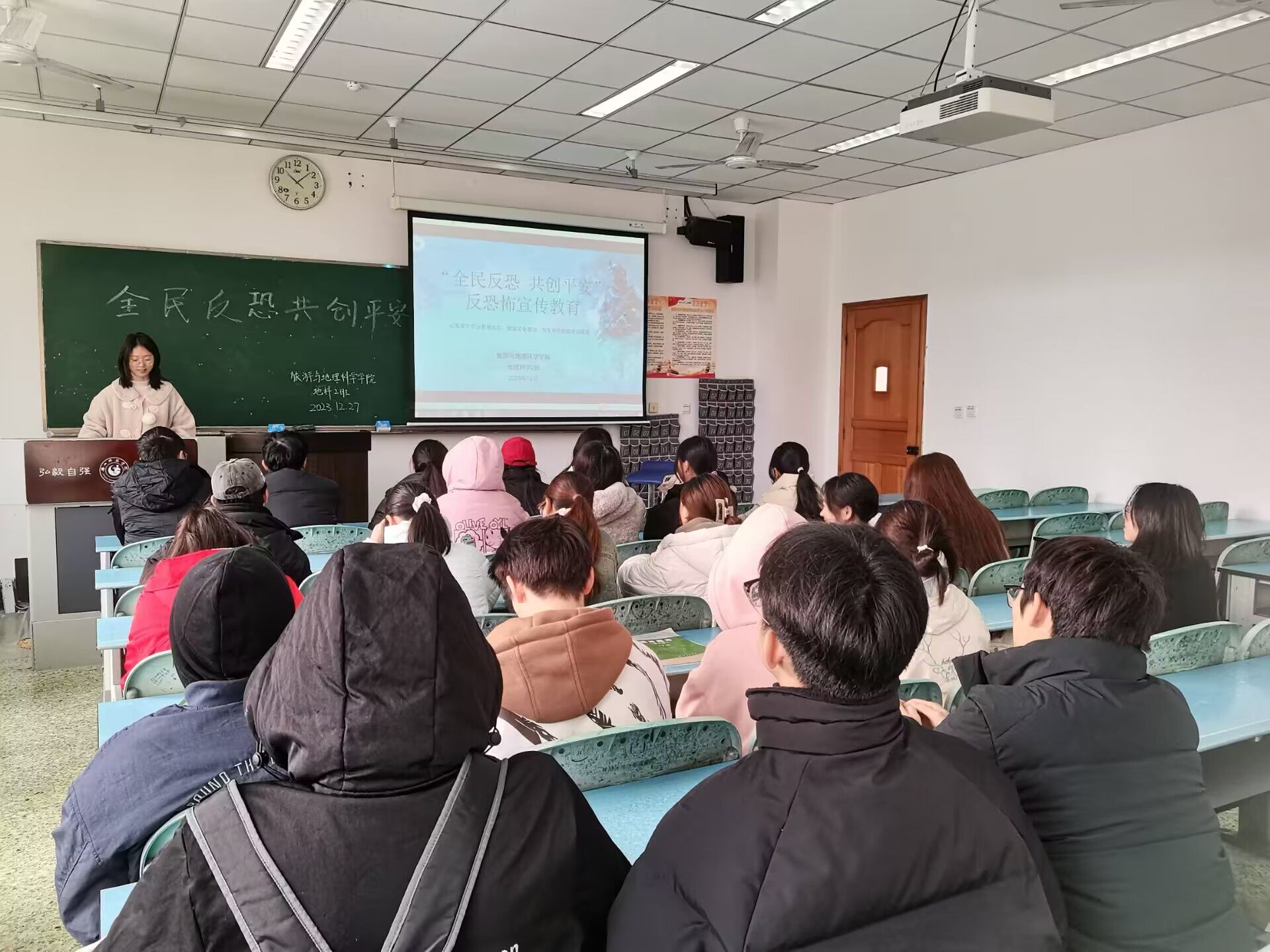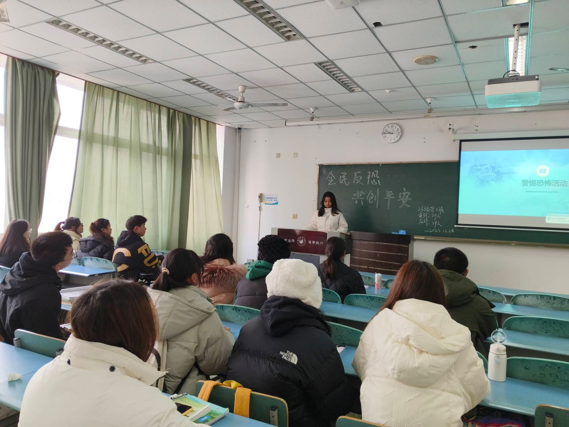 本次反恐怖宣传教育通过多种途径和形式分别在师生中宣传和普及了反恐防暴的应急知识和逃生方法。通过讲解、视频等组织师生学习当遇到危险或紧急情况时的正确处理和自我保护方法。重点讲解了如遇到暴力袭击事件的实用技巧,提醒广大师生要提高反恐怖意识。