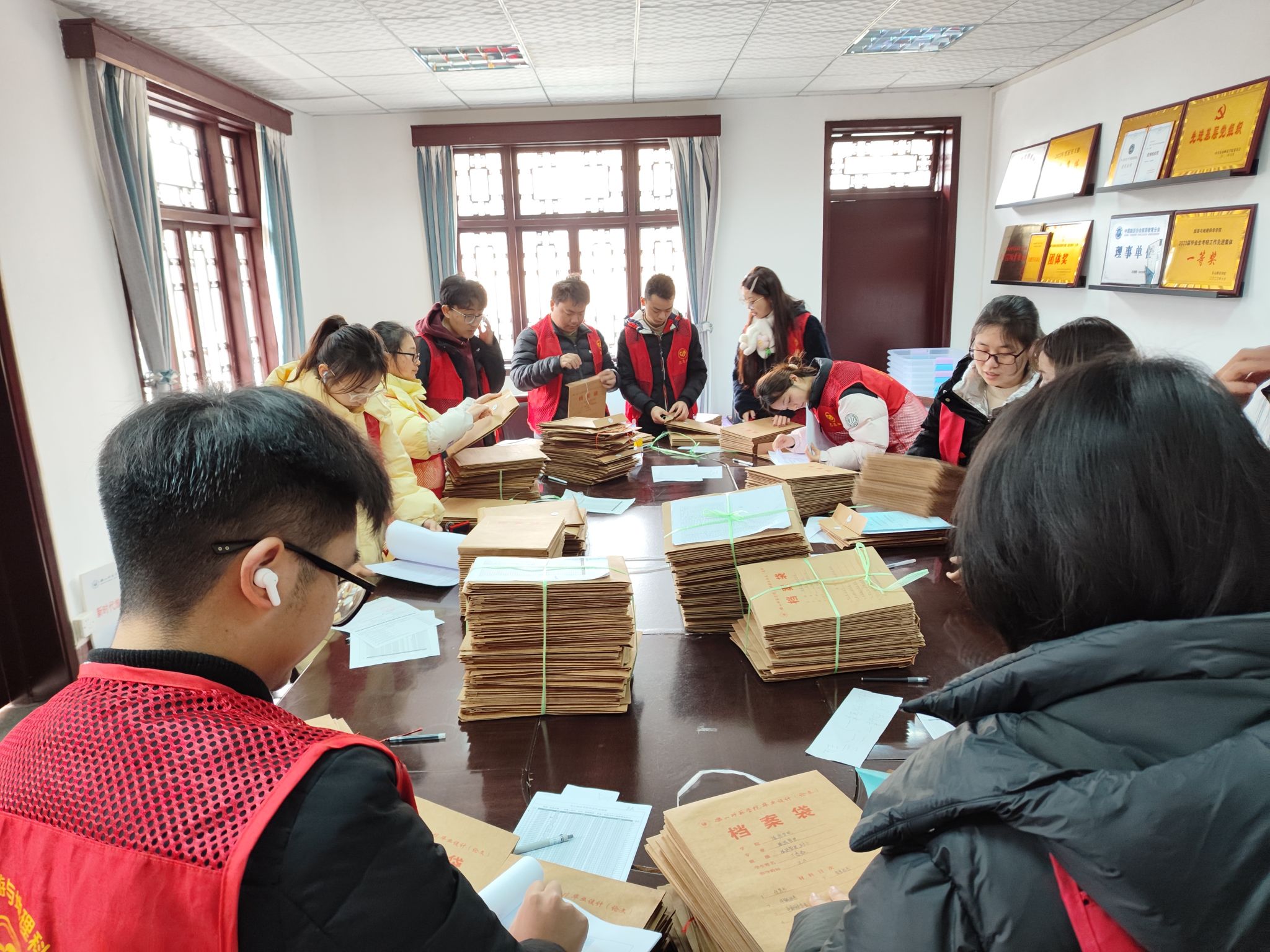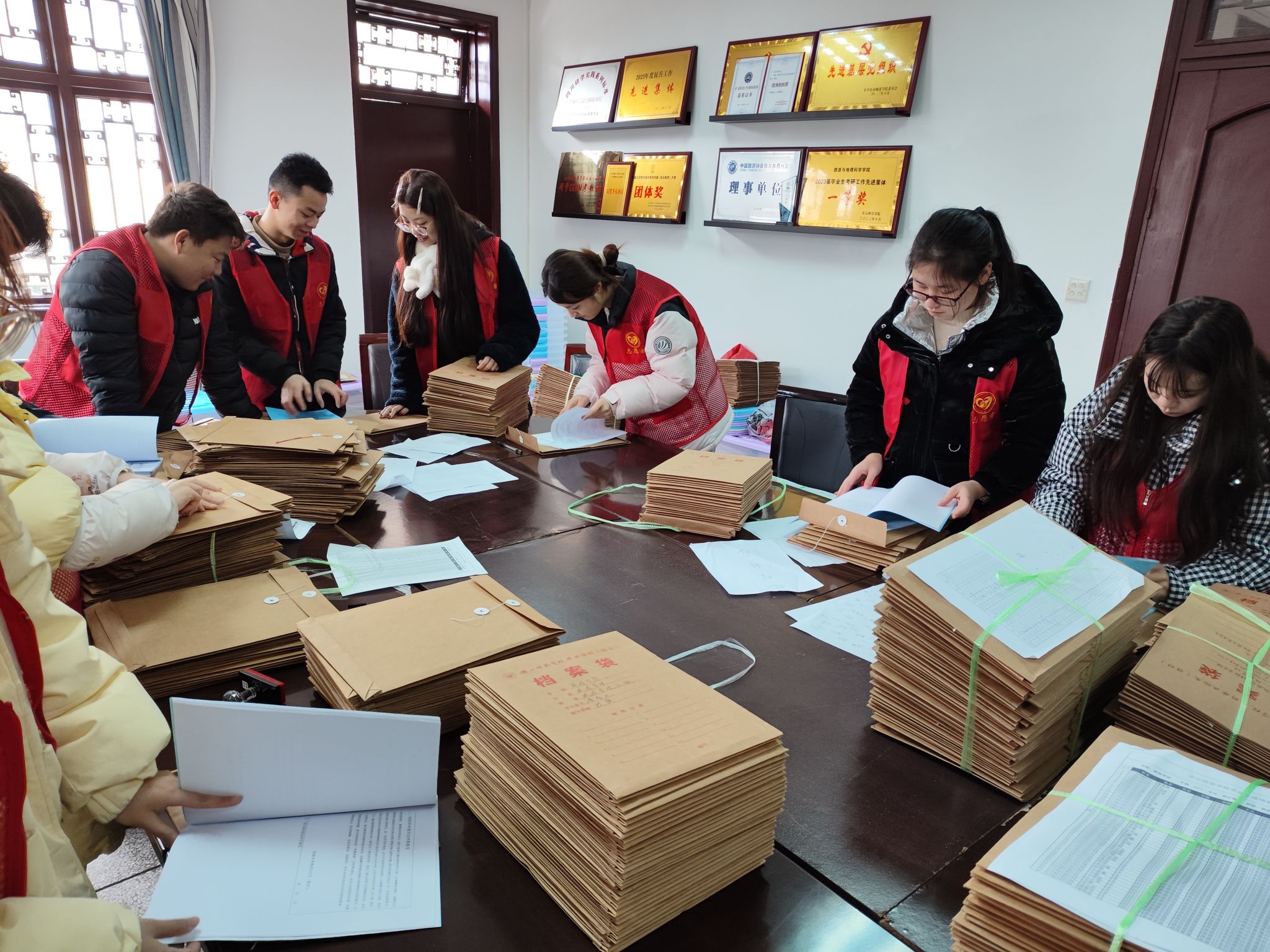 按照毕业论文材料的相关要求,为了确保毕业论文材料的完整性和准确性,每位志愿者根据不同的班级和专业进行了仔细分类和认真整理。在整理过程中,志愿者们充分发挥了各自的作用,形成了良好的团队协作,顺利完成了本次的整理工作。
