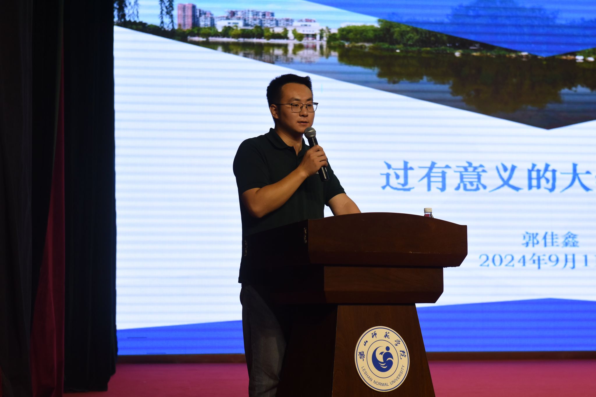 郭佳鑫从读书学习、实践创新、学生工作等方面介绍了自己的大学生活,强调积极和老师交流沟通的重要性。他结合自身工作经历和就业形势,告诉新生们要学好专业知识,不负大学时光。随后,他从职业规划、全面发展、文化积淀、身体健康等方面提出了自己的建议。郭佳鑫说,大学只有一次,青春只有一次,要敢于尝试、敢于创造,不要害怕失败。