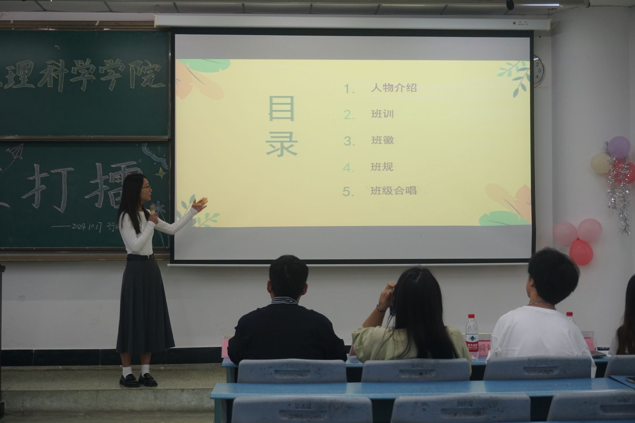 本网讯(文/周艳艳、图/陈淼)10月17日下午,万象城allwincity官方网站入口在行知楼414教室组织开展“三班打擂”活动。辅导员王强、班主任向婉丽、学院三大组织学生干部以及24级全体新生参加了本次活动。