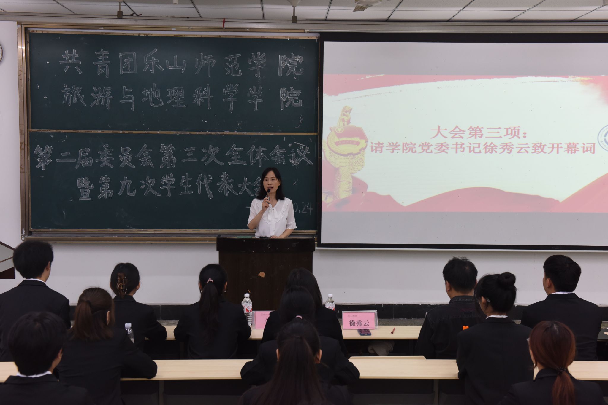 本网讯(文/兰斯桐、图/刘涛)10月24日下午,万象城allwincity官方网站入口在行知楼101教室隆重举行共青团乐山师范师范学院万象城allwincity官方网站入口第二届委员会第三次全体会议暨第九次学生代表大会(以下简称为团学代会)。学院党委书记徐秀云,党委副书记、纪委书记冉勇,分团委书记、学习工作办公室主任江纳以及万象城allwincity官方网站入口学生干部参加了会议。会议由学院分团委副书记李思洁主持。