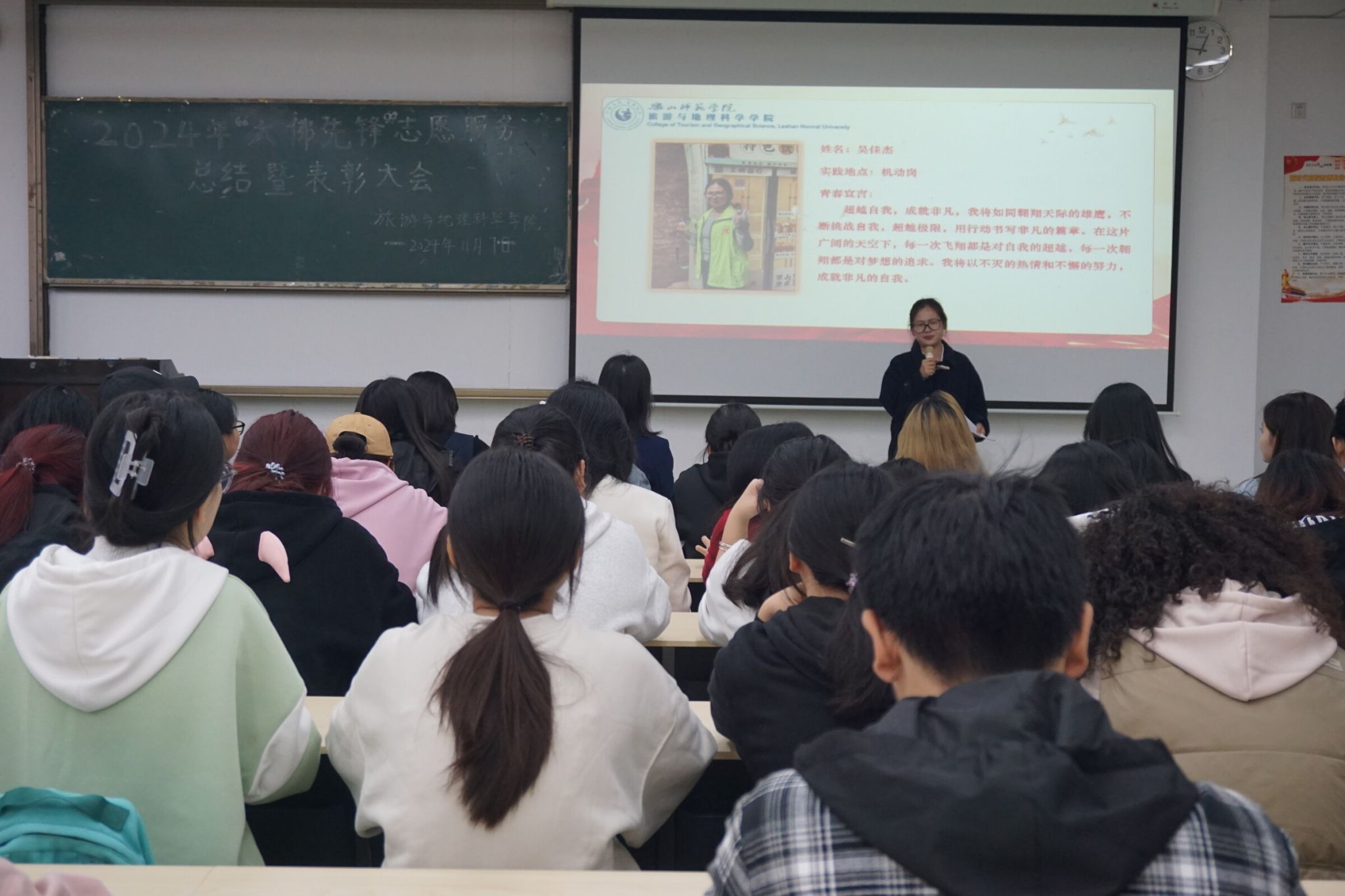 本网讯(文/吴航、图/陈淼)11月7日下午,万象城allwincity官方网站入口在行知楼125教室召开了2024年“大佛先锋”志愿服务总结暨表彰大会。学院党委书记徐秀云,分团委书记、学生工作办公室主任江纳,大佛景区班全体同学和学院2024级旅游管理、酒店管理专业学生参加了会议。会议由大佛景区班学习委员崔思雨主持。