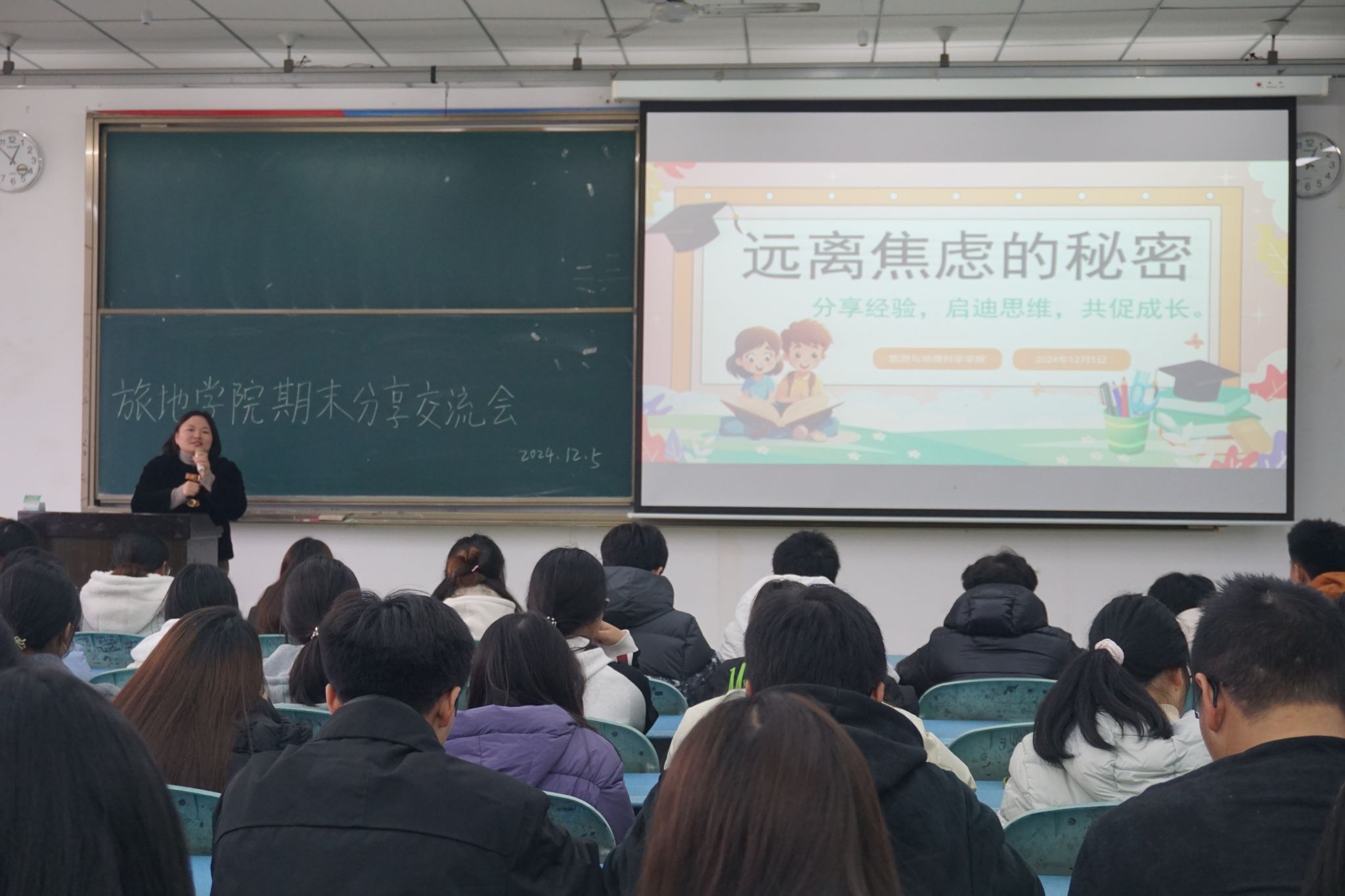 最后,江纳做了总结,强调了复习周和考试纪律,教大家正确认识焦虑,祝愿大家在期末考试中取得优异成绩。