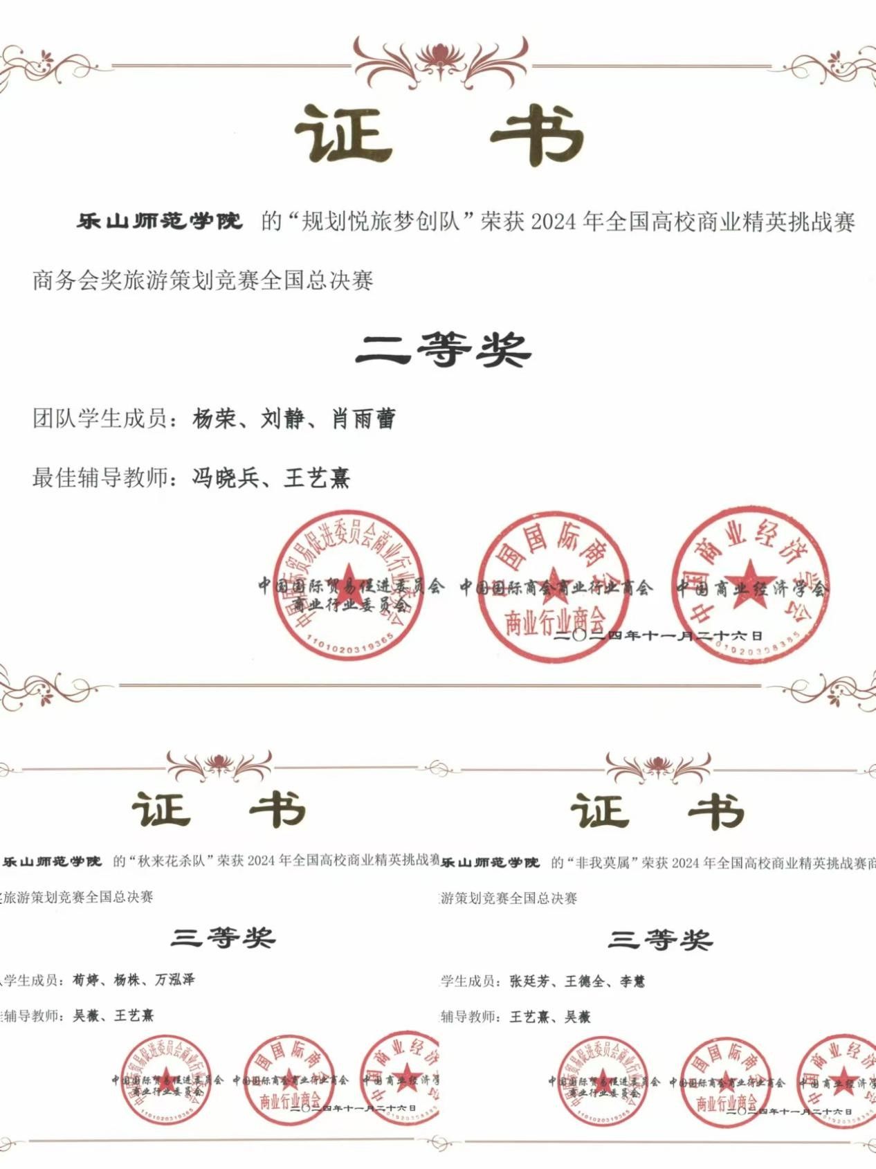 本次竞赛不仅为参赛团队提供了一个展示自我、锻炼能力的平台,也推动了行业人才对国内旅游产业资源的深入了解,为地方提供了向外宣传的宝贵机会。万象城allwincity官方网站入口的三支参赛团队在冯晓兵、王艺熹、吴薇三位老师的精心指导下,深入挖掘市场需求,精心策划并设计了独具特色的商务会奖旅游方案。在比赛过程中,展现出了较高的专业素养和团队协作精神。