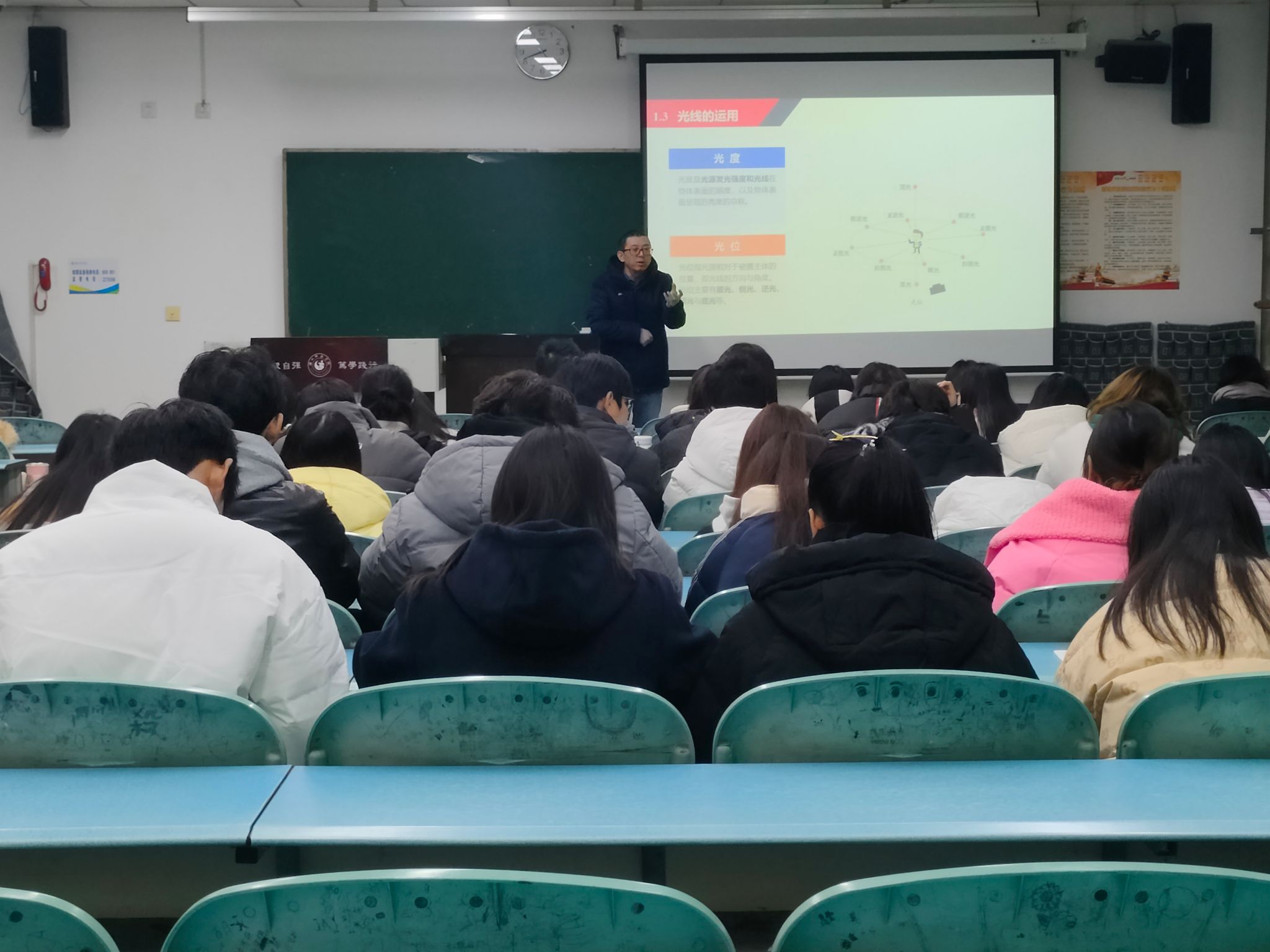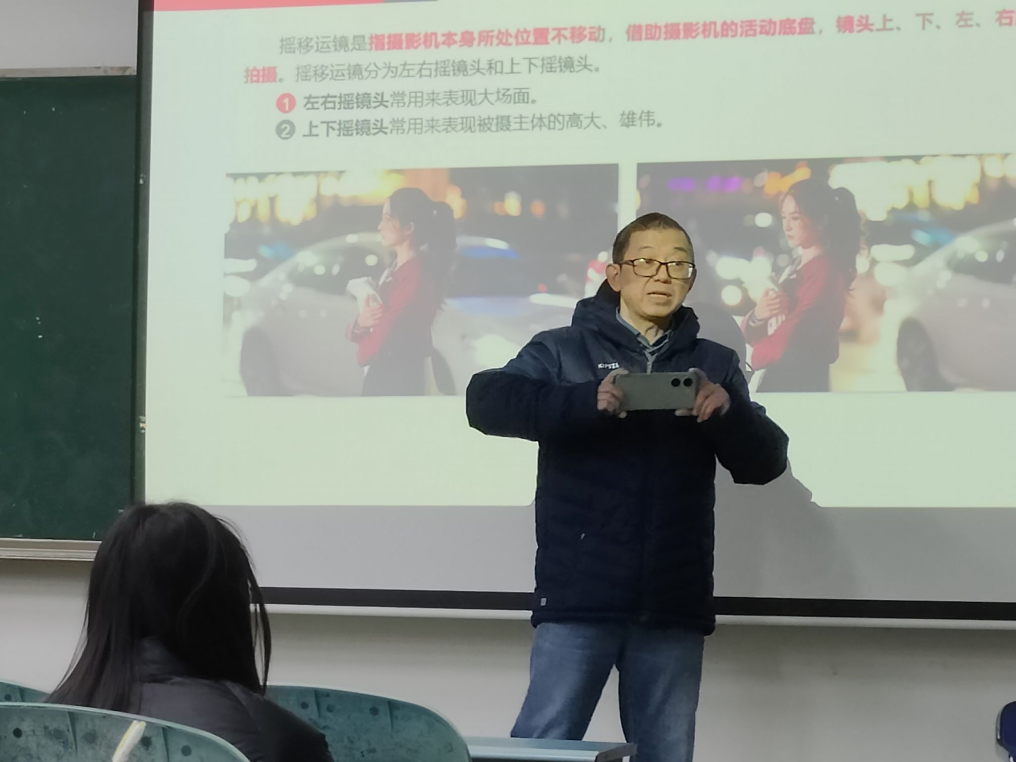 门涛强调,当下已步入人人自媒体的时代,每个人都是媒体的生产者。因此,他期望大家用心学习,不断提升自我素养与能力。随后,门涛从短视频镜头语言、常用运镜手法、构图设计以及后期制作原则四个方面进行了详细讲解。讲解过程中,他还辅以简洁易懂的动作示范,助力大家透彻理解相关知识要点。此外,门涛展示了多份学生的优秀作品,让大家对所学内容有了更为直观和深入的理解,进一步加深了对知识的领悟。