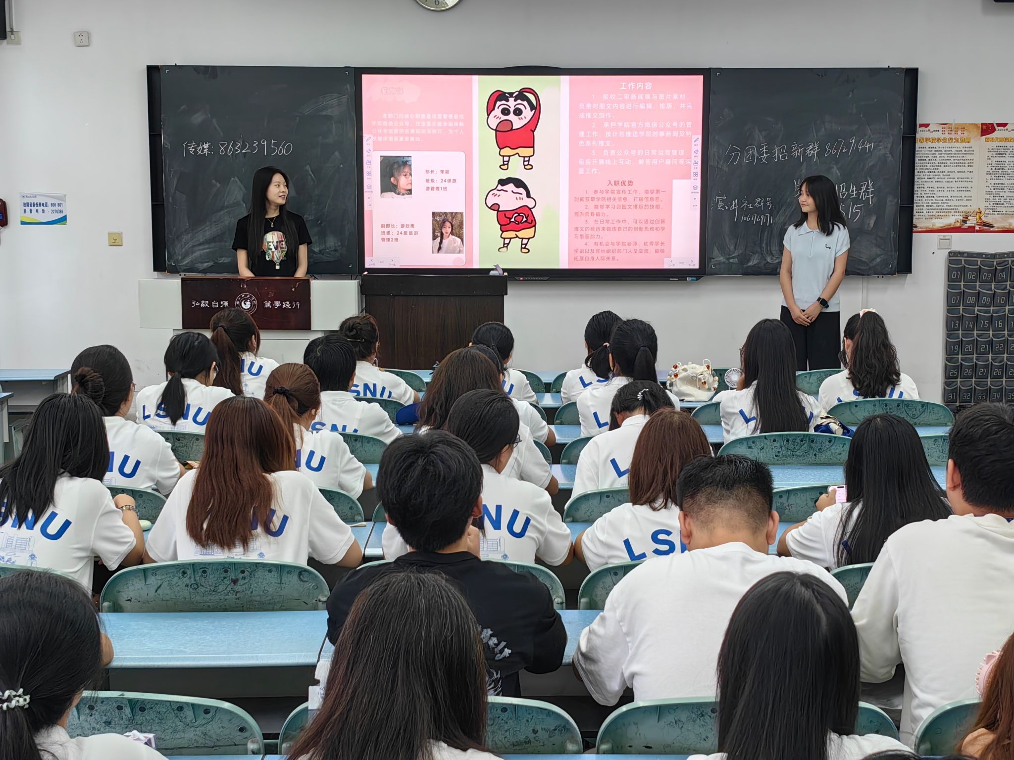 分团委在招新过程中着重强调思想引领与组织建设的重要性,通过开展主题团日、志愿服务等实践类项目活动,引领2025级新生坚定理想信念,培育服务意识与奉献精神,努力在思想上、行动上与学校、学院的发展方向保持一致。学生分会依托校内丰富多彩的活动,通过展示活动照片,生动呈现了校园文化生活的多姿多彩,不仅记录了同学们的青春风采,也展示了其在活动策划、执行及后勤保障等方面的卓越能力。青年传媒中心凭借扎实的媒体专业素养和富有创意的宣传方式,吸引了众多热爱传媒工作的同学。通过现场展示的新闻稿件、视频作品及新媒体推文,青年传媒中心不仅展现了团队的专业实力,也让同学们深刻感受到新兴传媒在校园文化传播中的重要作用和独特魅力。