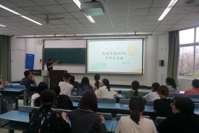 本网讯(文/图 刘凡嘉)9月14日上午,旅游学院在行知楼114教室举行18级考研座谈会。本次会议由2018级辅导员郑曾俊主持,旅游学院党总支书记徐秀云、院长郭剑英、党总支副书记冉勇、副院长但强、院长助理孙永兴、学生科科长左莉以及18级全体考研学生参加了此次会议。