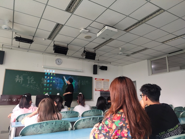 许铁城、陈翔宇分别讲解了辩论赛赛制、辩论素养,以及赛前需要准备的资料,并与辩手观看了一段辩论赛赛事视频。之后许铁城、陈翔宇带领辩手按小组进行辩论赛实地模拟演练。演练中正反双方辩手以清晰的思路和巧妙的陈词展示了自己的想法。最后,许铁城、陈翔宇对本次演练做了点评,指出了双方优点和不足,并表示期待大家在5月20日复赛场上的精彩表现。