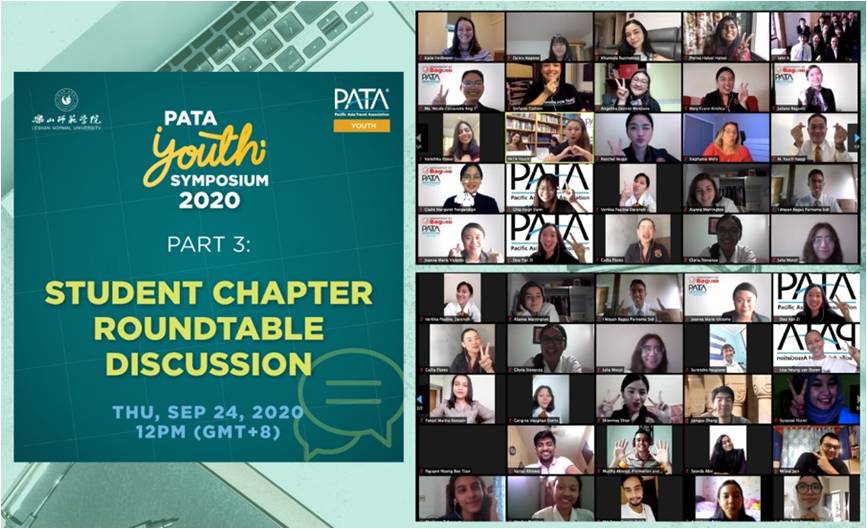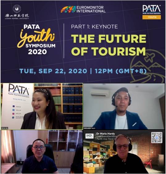 本网讯(文/图 阚梓齐)9月22日——25日,亚太旅游协会青年论坛(PATA Youth Symposium,在线会议)由乐山师范学院和PATA共同主办。9月22日12点-13点(GMT+8)为开幕式和专题讲座《旅游业的未来》;9月23日12点-13点为专家辅导会议;9月24日12点-13点为学生圆桌会议;9月25日12点-13点为新冠疫情后旅游业就业前景讲座。来自亚太地区的专家学者、青年学子和乐山师范学院国际合作与交流处 (国际教育学院)、旅游学院部分师生共500余人参会。