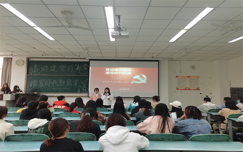 本网讯(图/刘李 文/刘凡嘉)为了迎接中国共产党建党一百周年,近一步加强思想政治教育在大学生中的价值观引领作用,促进大学生全面发展,3月20日下午,由旅游学院分团委组织部主办,以“喜迎建党百年,谱写时代新篇”为主题的活动在行知楼101教室成功举行。参加本次活动的评委包括旅游学院分团委各部长 。参赛人员有19级和20级各班学生代表,共计12个组。