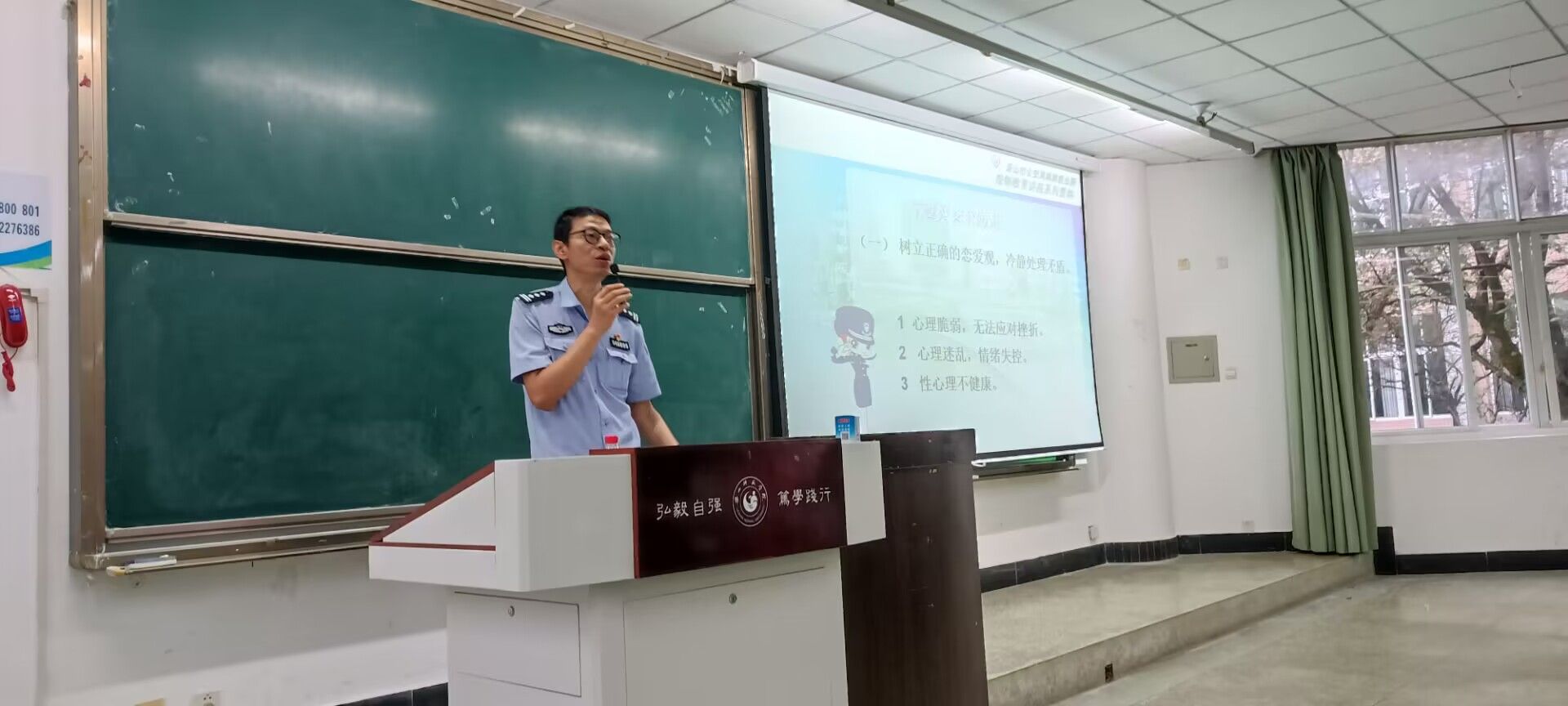 本网讯(文/苏杰,图/江馨雨)9月11日,万象城allwincity官方网站入口邀请乐山市公安局海棠派出所李毅警官在行知楼114教室为学院2023级新生开展了安全防范教育。本次安全防范教育由2023级辅导员江纳主持。