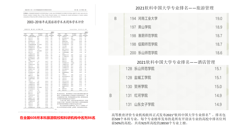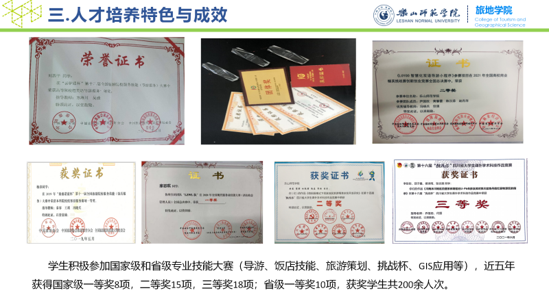 万象城allwincity官方网站入口是全国同类地方院校中旅游研究最强的二级学院之一。建有四川省哲学社会科学重点研究基地——四川旅游发展研究中心、原四川省旅游局“遗产旅游研究基地”、 四川省社科联社会科学普及基地——四川世界遗产普及基地、乐山市 “世界遗产研究所”、华中师大(国家文化产业研究中心)西南文化遗产研究基等科研机构。近年来获国家级项目2项、省部级项目30多项,发表论文100余篇,其中核心期刊论文50多篇,出版专著、教材10多部;获得省哲学社会科学优秀成果二等奖1项,优秀成果奖2项。是四川省建设本科旅游管理高等教育质量工程最早和最多的单位,共建设国家教育质量工程2项,省级教育质量工程7项、省级教改项目3项,国家规划教材2部,省规划教材2部,获得省部级以上教学成果奖2项。