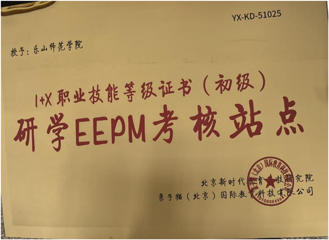 本网讯(图、文/薛文娟)近日,教育部“1+X”研学旅行策划与管理职业技能等级证书评价机构授予我校2021年度“1+X”研学EEPM证书(初级)“优秀试点院校”称号,目前,全省仅有2所本科试点院校获此荣誉。