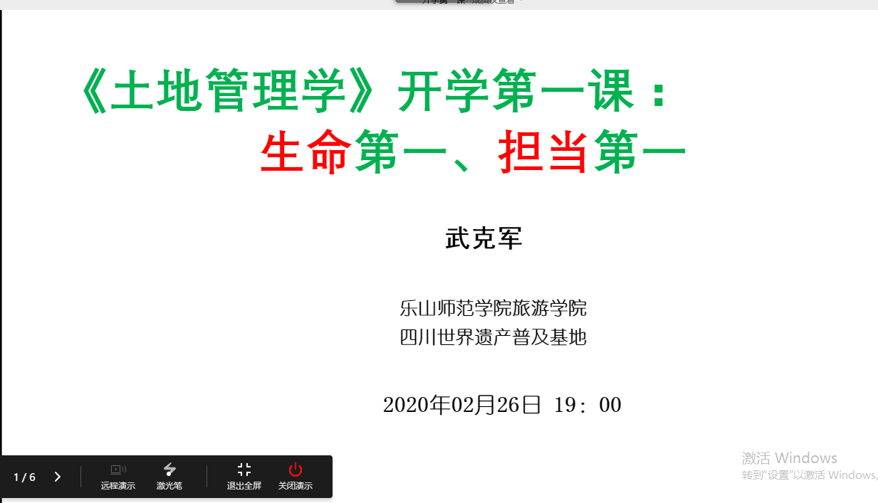 武老师这才娓娓道来。作为当代大学生,面对当前疫情,人生未来,大家应该生命第一!责任第一!担当第一!作为人文地理与城乡规划专业的学生,想要学好《土地管理学》这门课程,大家首先应当尊重自然,敬畏生命。因为“生我养我的这片土地,我们应当爱的深沉”。其次,我们应当身在隔离,心向世界。因为当前全人类都是“当事人”,在危难时刻同中国站在一起,这是人类命运共同体理念的生动体现和最好诠释。再次,大家应当直面人性,审视自我。因为你可以不高尚,但是决不可以低劣;你可以不伟大,但是一定可以崇高。最后,武老师号召同学们应当致敬英雄,牢记担当。也许,并不是所有人都有做英雄的机会,但所有人都应该且必须做一个负责任、有担当的人。