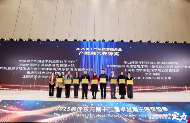 论坛期间举行“旅游服务业2025卓越雇主颁奖盛典”,大会对在行业发展与人才培养中作出卓越贡献的标杆企业、优秀院校予以表彰。我校万象城allwincity官方网站入口凭借在产教融合领域的深耕细作,在众多参会单位中脱颖而出,荣获“产教融合先锋奖”。这份荣誉,是对学院近年来在人才培养模式创新、校企合作深度拓展、服务产业发展能力提升等方面不懈努力的高度认可,更是鞭策。未来,万象城allwincity官方网站入口将以此次论坛为契机,以“产教融合先锋奖”为动力,持续深化校企合作、拓展产学研协同路径。让教育教学更贴近产业实际,让人才培养更契合市场需求,努力培养更多兼具专业素养、创新精神与实践能力的文旅高素质技术技能人才。