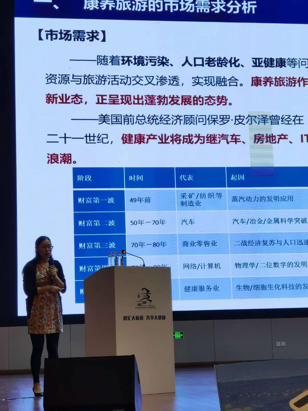 在高峰论坛上,桂林理工大学风景园林与旅游学院院长吴忠军教授、暨南大学深圳校区旅游学院副院长章牧教授、南宁师范大学旅游与历史文化学院副院长段文军教授作了主旨演讲。郭剑英作《中外康养旅游实践与启示》主旨演讲,介绍了康养旅游的市场需求和政策驱动,并对美国图森峡谷农场和中国眉山七里坪度假区的康养旅游产品与服务进行了阐释,最后对昭平县康养旅游发展提出了六点建议。
