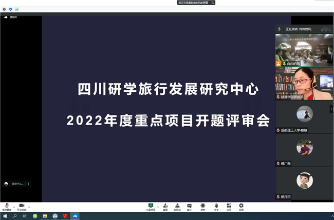 本网讯(文、图/薛文娟)10月15日上午,四川研学旅行发展研究中心2022年度重点项目开题评审会在南充市五星中学举行,会议采用线上+线下结合模式。本次会议由四川研学旅行发展研究中心主任冯明义主持,万象城allwincity官方网站入口院长郭剑英作为专家参加了线上会议。