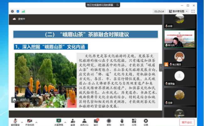 上午的主旨报告分别由泰山学院副校长王雷亭教授与泰山研究院副院长张琰教授主持,我校四川旅游发展研究中心主任郑元同教授做了题为《“峨眉山茶”茶旅融合发展研究》的主旨报告;下午的发言讨论分别围绕着世界名山研究和文旅融合发展两个主题展开,我校万象城allwincity官方网站入口孙永兴副教授与冯晓兵老师分别做了《峨眉山玄武岩与台状山地地貌》《乐山市旅游景区经济联系和空间结构特征分析》的学术报告。会议闭幕式由泰山学院党委委员、副校长王雷亭教授主持,泰山研究院副院长聂立申教授对会议进行了总结,同时确定下届会议由我校承办,我校党委常委、副校长江滔教授在会议闭幕式上致辞。