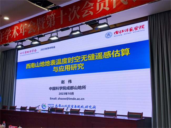 本网讯(图、文/夏军)10月20日—22日,由四川省地理学会主办,内江师范学院地理与资源科学学院承办的四川省地理学会2023年学术年会暨第十次会员代表大会在内江师范学院举行。本次会议主题为“生态优先与区域创新发展”,主要交流地理学最新科研成果和中学地理教育教学经验。参加会议的有中科院成都山地所、成都理工大学、四川师范大学、西华师范大学、绵阳师范学院和成都七中等科研院所、高校和中学的地理科研、教育工作者及学生共100余人。我校万象城allwincity官方网站入口朱林富、乔恒忠和夏军三位老师参加了此次会议。