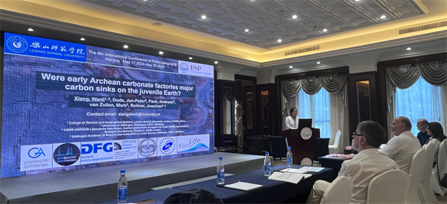 我校万象城allwincity官方网站入口教师向婉丽博士参加了此次会议,并在分会场做学术报告《Were early Archean carbonate factories major carbon sinks on the juvenile Earth?》,受到同行广泛认可与好评。同时,向婉丽参加了会前皖浙赣地区和会后中–上扬子地区的2条野外地质考察路线活动,考察多处经典地层剖面、特异埋藏生物群和国家地质公园。