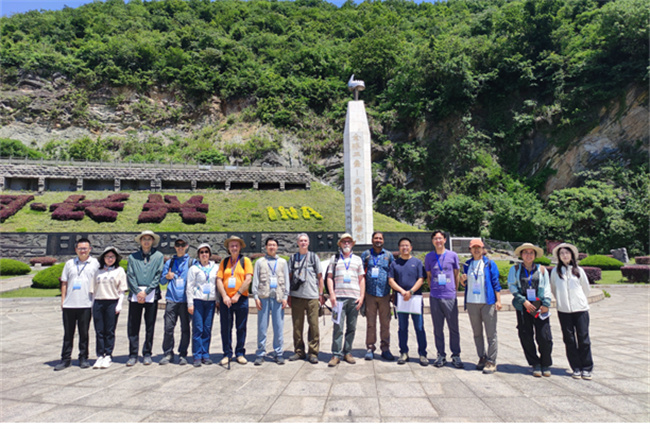 图3 学院教师与国内外学者在长兴金钉子剖面前合影