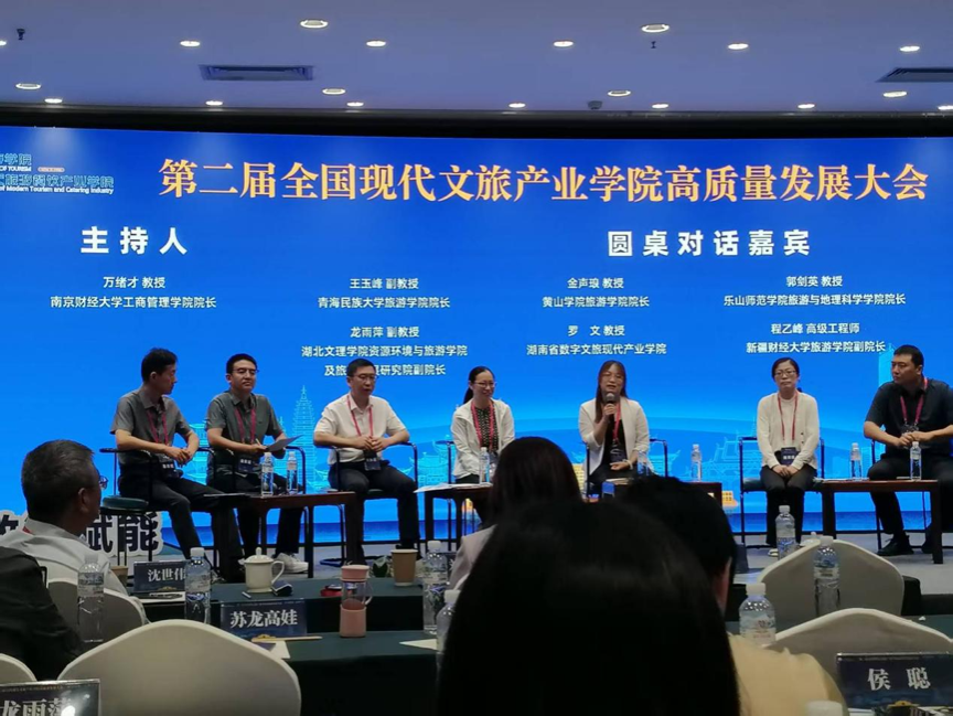 大会涵盖开幕式、主旨演讲、圆桌论坛、闭幕式及昆明学院现代产业学院考察等多个环节。郭剑英参与了圆桌对话2,主题为“现代文旅产业学院服务区域经济发展的路径与成效”。该环节由南京财经大学工商管理学院院长万绪才主持,对话嘉宾包括青海民族大学旅游学院院长王玉峰、黄山学院旅游学院院长金声琅、乐山师范学院万象城allwincity官方网站入口院长郭剑英、河北经贸大学旅游学院副院长侯聪、湖北文理学院资源环境与旅游学院副院长龙雨萍、新疆财经大学旅游学院副院长程乙峰以及讯狐国际科技(北京)有限公司董事长吴峰。对话聚焦于文旅产业学院的发展困境与破局路径,强调应以区域经济需求为导向,通过深化产教融合、明确各方权责、构建互利生态,推动高校与企业从“松散合作”向“共生共融”转型。