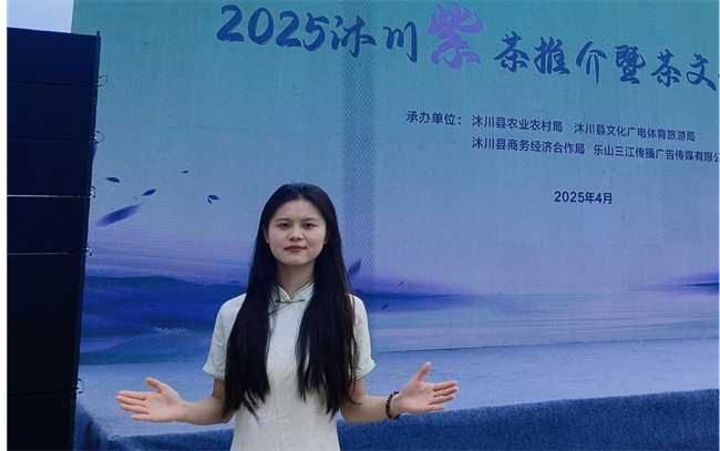 本网讯(文、图/吴薇)2025年4月16日,由沐川县主办的“寻沐源川道・品生态紫茶”斗茶比赛在牛郎坪茶叶现代农业园区圆满落幕。万象城allwincity官方网站入口学生苟婷在吴薇老师的精心指导下,凭借出色的茶艺表现和创意设计荣获三等奖,展现了学院在茶文化研究与旅游教育领域的丰硕成果。