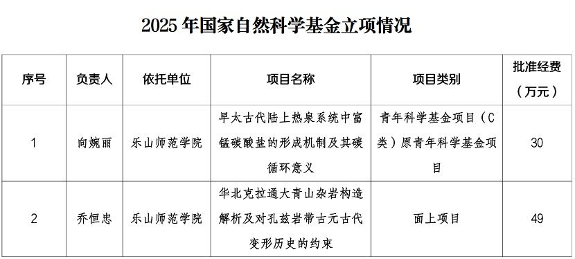 乔恒忠博士主持的《华北克拉通大青山杂岩构造解析及对孔兹岩带古元古代变形历史的约束》荣获面上项目资助。向婉丽博士主持的《早太古代陆上热泉系统中富锰碳酸盐的形成机制及其碳循环意义》荣获青年科学基金项目资助;两项课题的成功立项,离不开学校提供的良好科研平台和学院营造的浓厚学术氛围,是团队长期积累、刻苦攻关的成果。